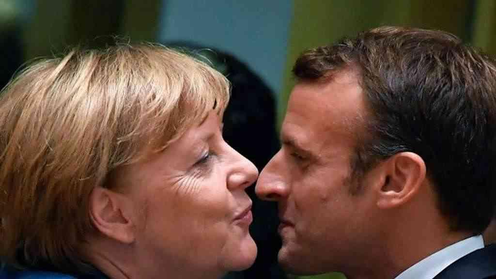 Merkel e Macron durante cúpula da UE em Bruxelas