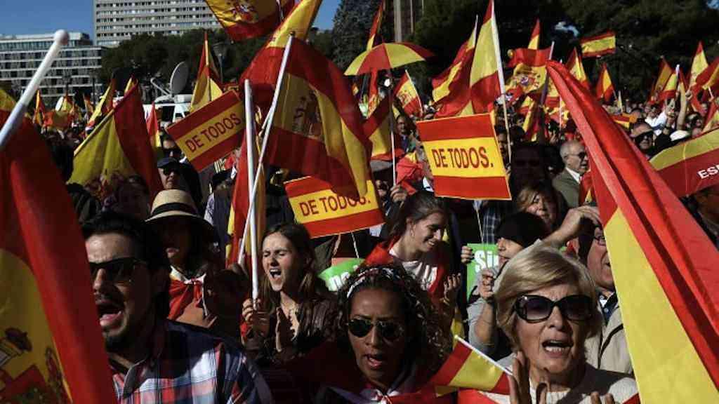 Ao longo do percurso são vistas várias bandeiras espanholas, mas também da Catalunha e europeias; e os cantos de Viva Espanha e Viva Catalunha. As informações são da agência de notícias EFE.