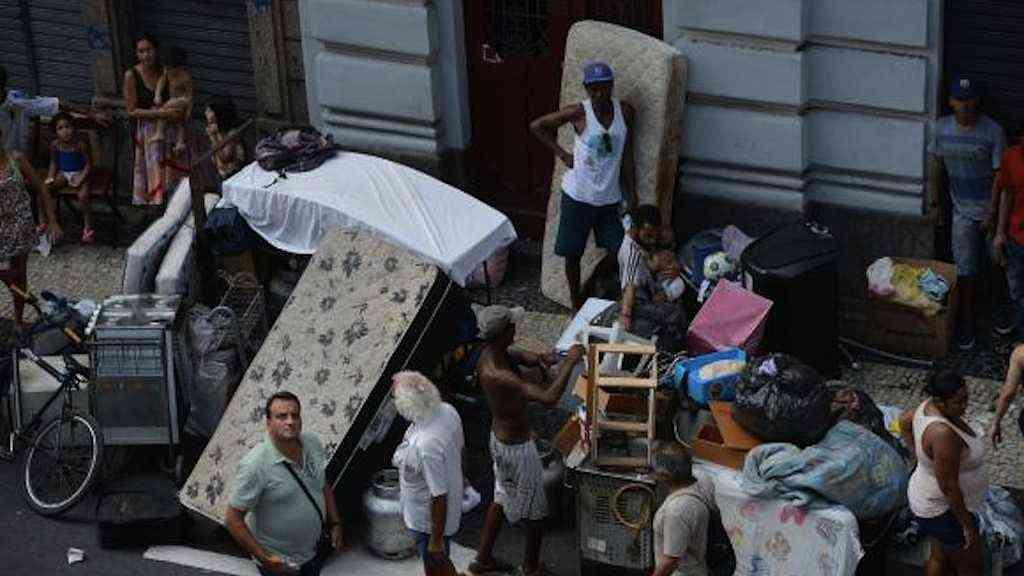 Desde às 8h, os moradores começaram a deixar o prédio, descendo colchões, geladeiras e fogões, que foram colocados na calçada, em frente à unidade. As famílias, muitas com crianças pequenas, disseram não ter para onde ir ou onde guardar os poucos bens.