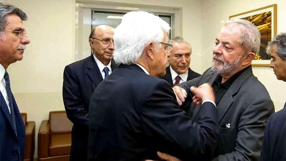 Vestindo camisa e paletó pretos, Lula recebeu também as visitas de adversários políticos, como o ex-presidente Fernando Henrique Cardoso (PSDB) e o presidente Michel Temer (PMDB). Aos interlocutores, elogiou o fato de, naquele momento, deixarem as disputas de lado.