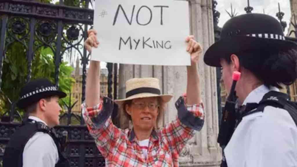 Na Escócia, a polícia prendeu Simon Hill, por exemplo, por gritar para o rei: "Quem te elegeu?" A polícia, porém, admitiu que detenções do tipo não eram justificadas e que todos têm o direito de expressar sua opinião e protestar, também durante uma mudança no comando da monarquia.