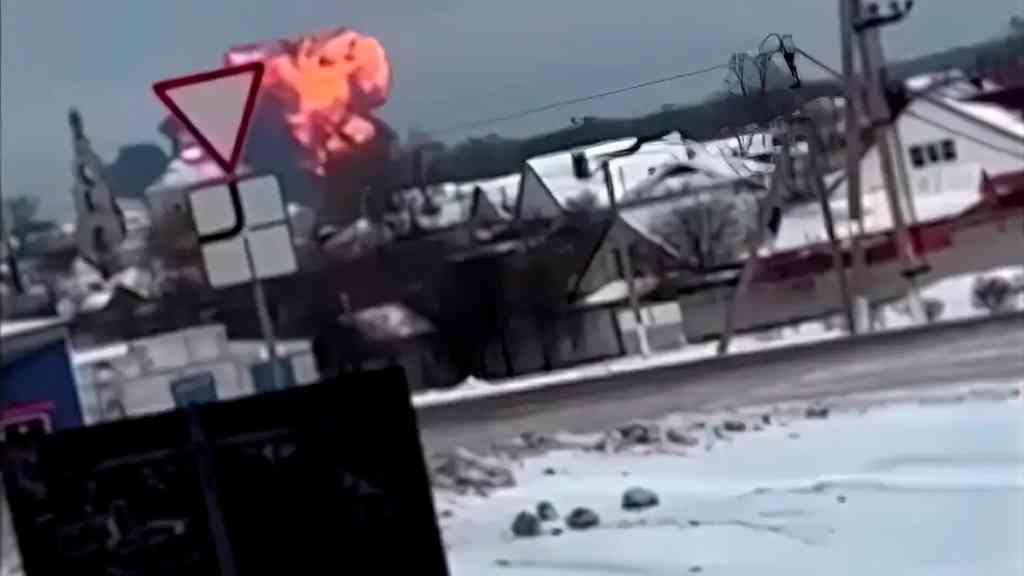 Um vídeo postado no aplicativo de mensagens Telegram por Baza, um canal ligado aos serviços de segurança russos, e verificado pela Reuters, mostrou grande aeronave caindo em direção ao solo perto da vila de Yablonovo, na região de Belgorod, e explodindo em uma grande bola de fogo.