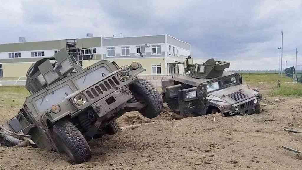 As imagens de alguns dos veículos destruídos usados pelos combatentes pró-ucranianos transmitidas pela mídia estatal russa mostravam equipamentos militares fabricados nos EUA.