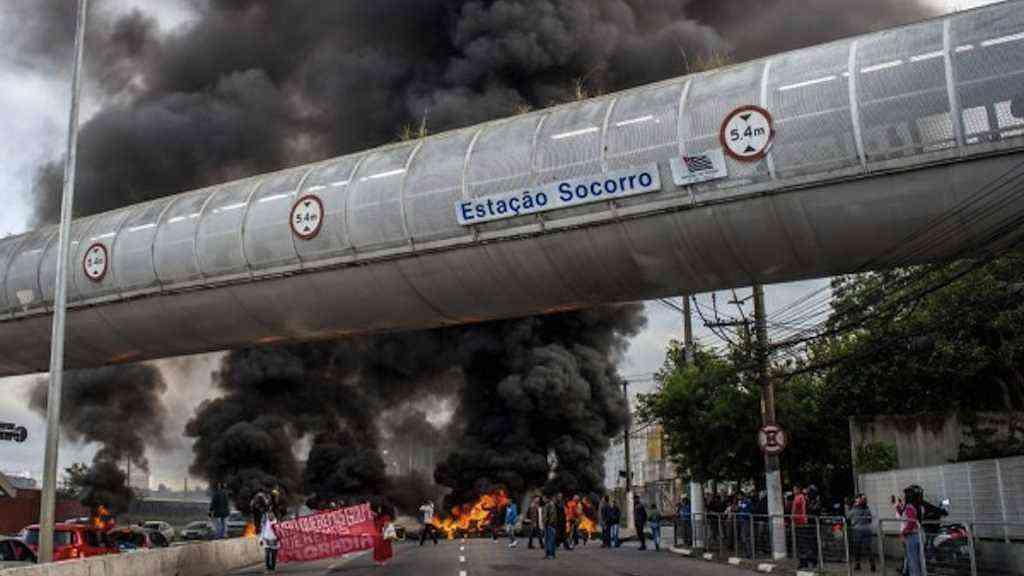 Segundo a Ecovias, concessionária que administra este sistema, os manifestantes fizeram uma barreira de pneus, aos quais colocaram fogo na pista