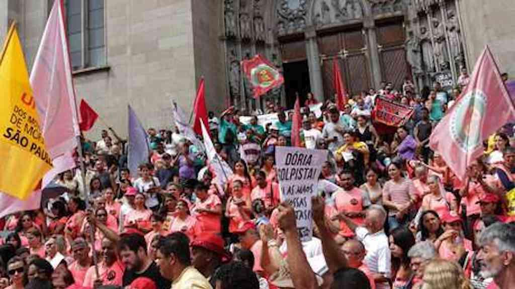 Com carro de som e camisetas coloridas, os ativistas se posicionaram em frente à Catedral da Sé. Onde o prefeito da cidade, João Doria, participava de missa em comemoração aos 463 da cidade de São Paulo.