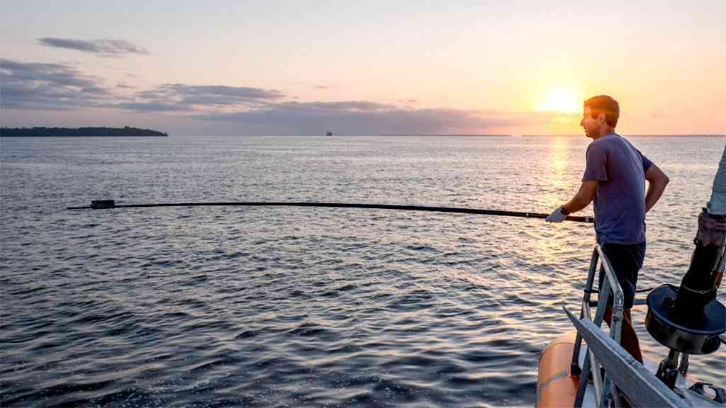 O pesquisador francês Douglas Couet, parte da equipe da expedição Tara Oceans, coleta amostras no rio Amazonas para estudo dos microrganismos aquáticos da América do Sul