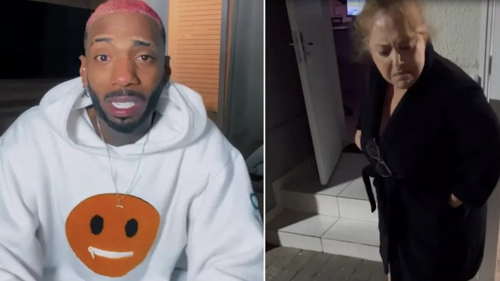 No encontro, filmado pelas câmeras do condomínio, a aposentada chamou o humorista de “macaco”, “neguinho”, “urubu” e “demônio preto”.