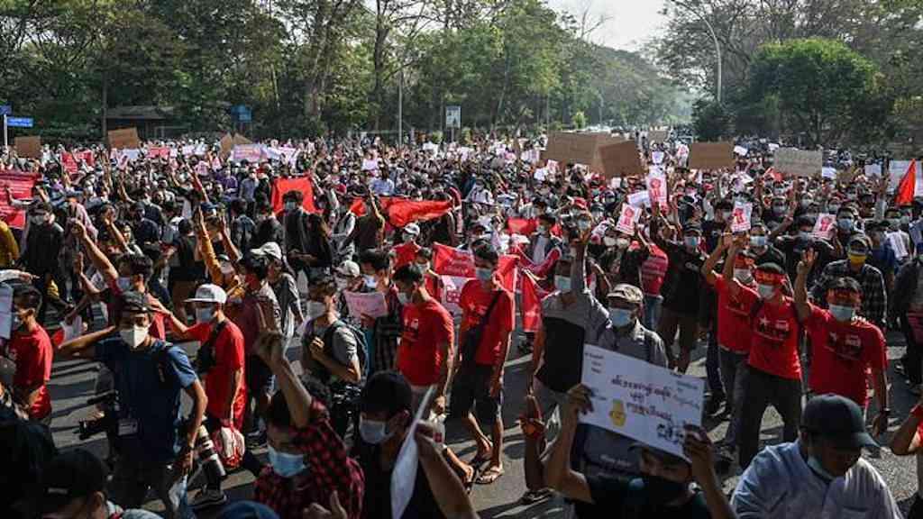 Multidão desafia militares em protesto contra golpe em Mianmar