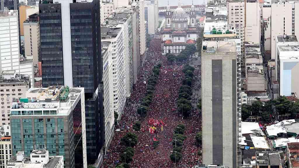 Multidão de flamenguistas ocupa principal avenida no Centro do Rio