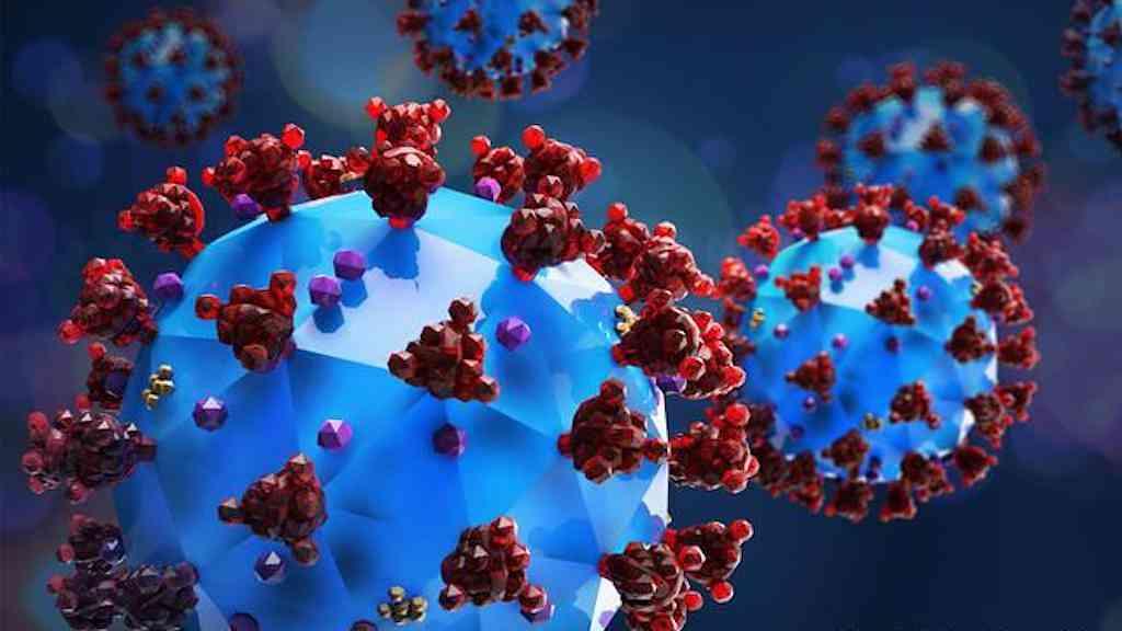 Modelo computadorizado do novo coronavírus, com a proteína spike em vermelho