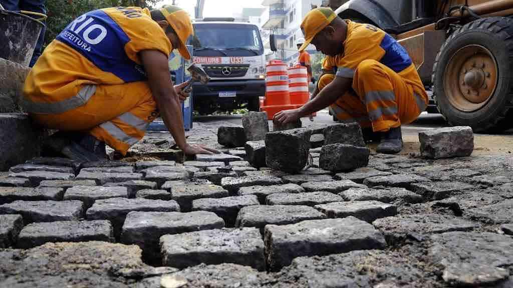 Funcionários da Prefeitura fazem conservação de calçada no Pechincha: Cuidar da Cidade