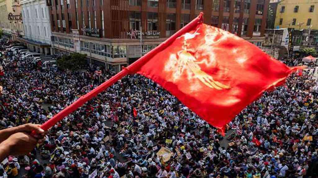 Protesto contra o golpe militar em Myanmar