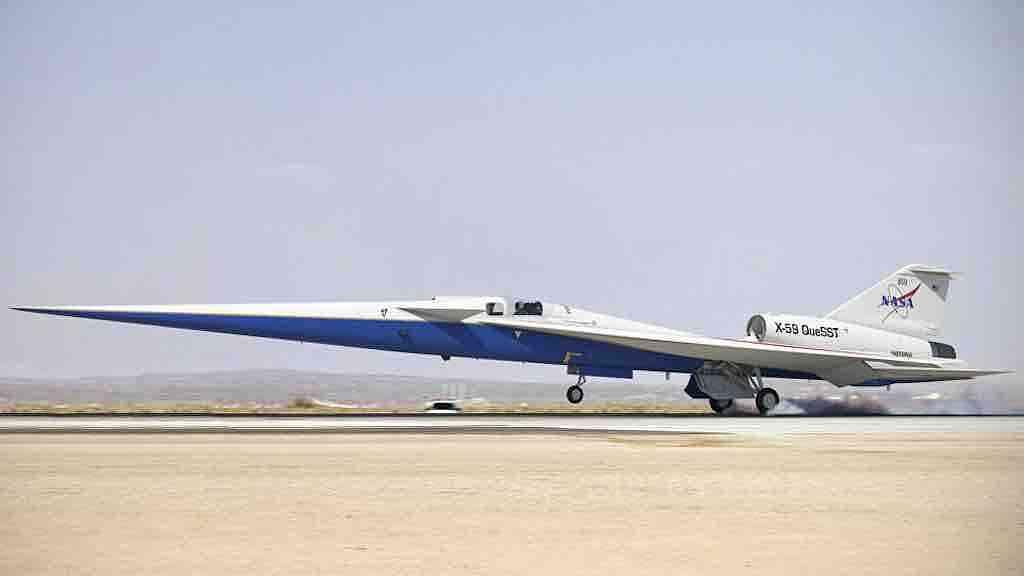 A aeronave X-59 de tecnologia supersônica silenciosa foi projetada para reduzir o estrondo sônico escutado no solo quando uma aeronave voa a velocidades supersônicas.