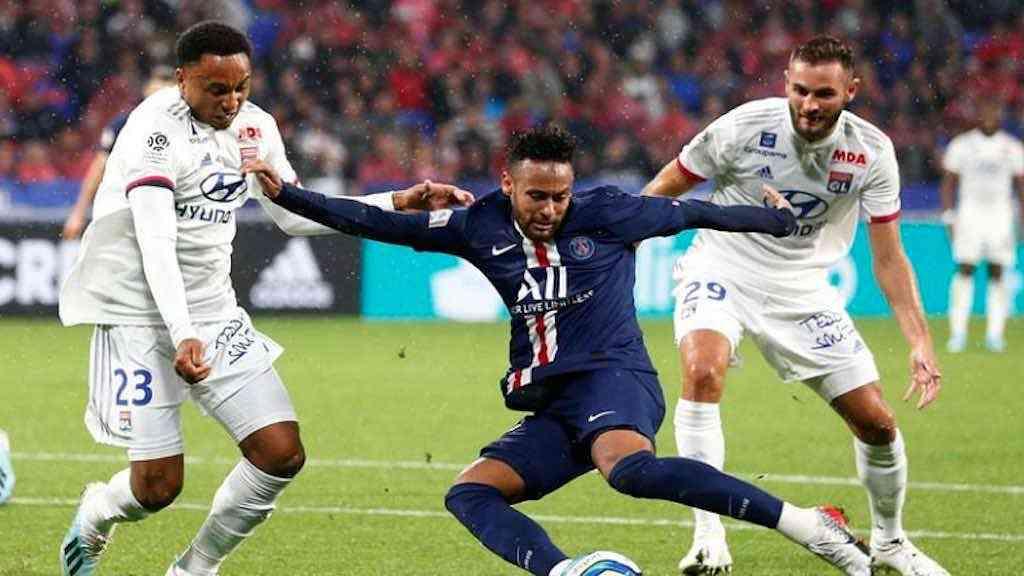 Neymar marca o gol da vitória do PSG contra o Olympique de Lyon
