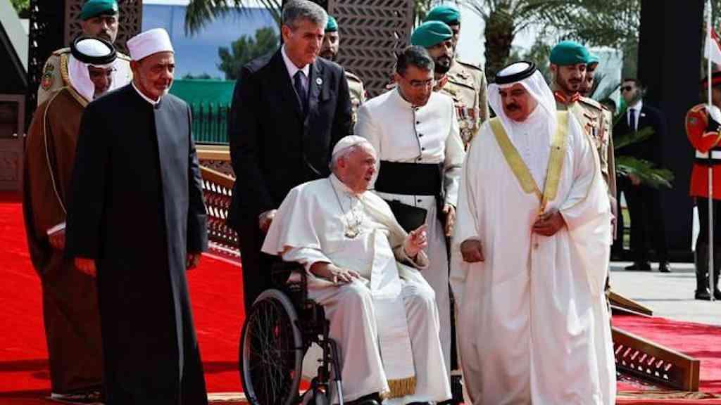 Francisco discursou em seu primeiro dia completo no Barein ao encerrar um fórum sobre o diálogo Leste-Oeste promovido pelo rei do país do Golfo, onde os cristãos podem praticar sua fé publicamente nas igrejas.