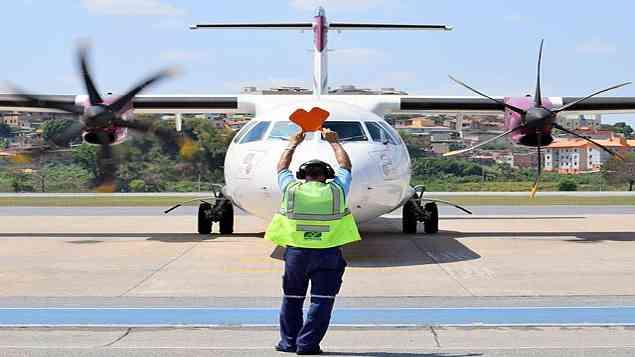 Modelo ATR-72 com 68 assentos que será usado pela Flyways Tripulação durante voo teste em Belo Horizonte