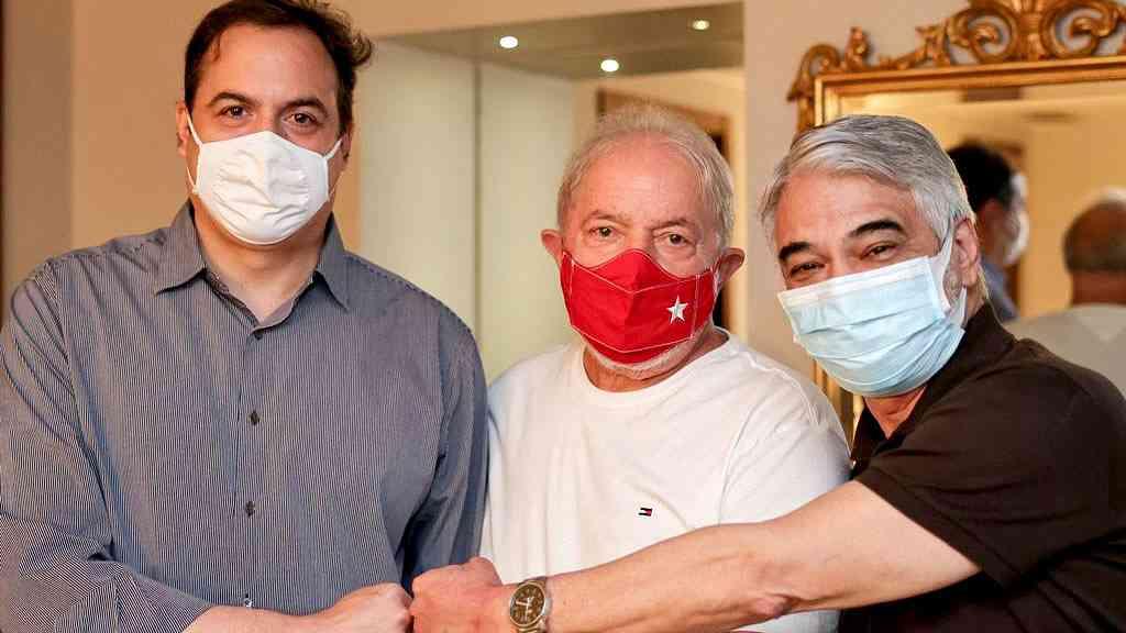 O governador pernambucano Paulo Câmara, do PSB; Lula e o senador Humberto Costa (PT-PE) conversam sobre as eleições