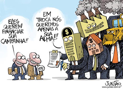 O texto é longo. Um resumo: na base do sistema político brasileiro opera um mecanismo de exploração da sociedade por quadrilhas formadas por fornecedores do Estado e grandes partidos políticos. O mecanismo opera em todas as esferas do setor público, no Legislativo, no Executivo, no governo federal, nos estados e nos municípios.