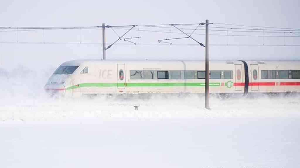 Trem cruza a paisagem repleta de neve em Hannover: Alemanha enfrenta frente fria histórica