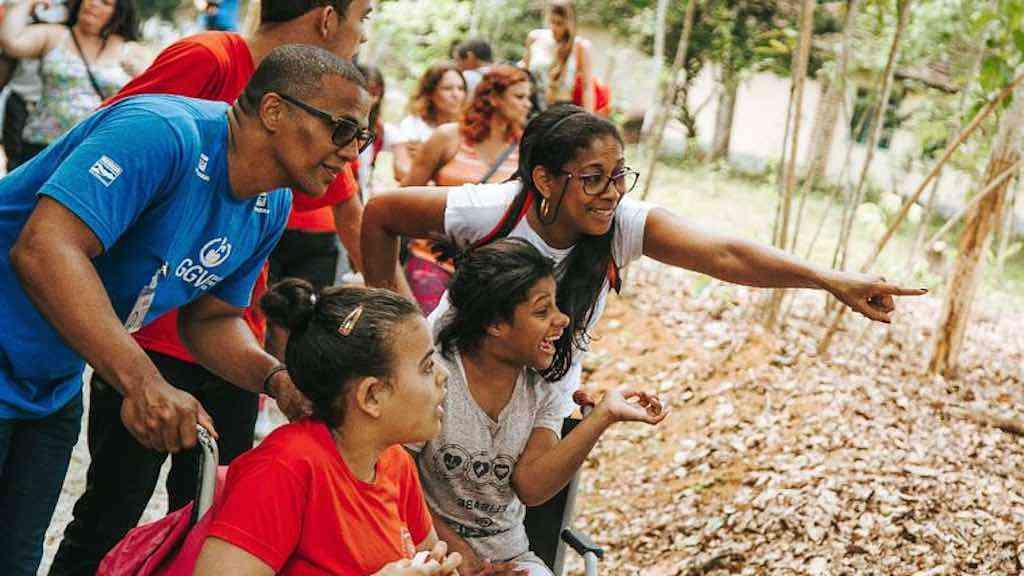 O Projeto Guapiaçu Grande Vida (GGV) capacitou 45 monitores ambientais no município de Cachoeiras de Macacu. Uma das monitoras tem baixa visão. “Quando há algum evento na reserva, eles estão nos acompanhando e falando sobre o projeto”.