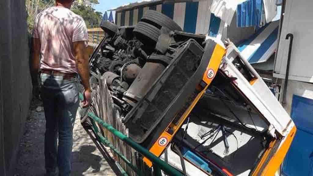 Imagens e depoimentos mostram que o micro-ônibus caiu cerca de 20 metros de altura até bater em uma casa na areia da praia de Marina Grande.
