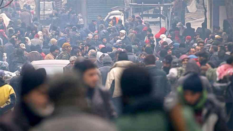 Canal de TV da Síria, citando seu correspondente na cidade, afirmou que os ônibus começaram a sair de Aleppo neste domingo. Embarcavam a partir de uma praça onde mais de 15 mil pessoas se reuniram para esperar pelos ônibus. Muitos passaram a noite dormindo nas ruas em temperaturas congelantes.