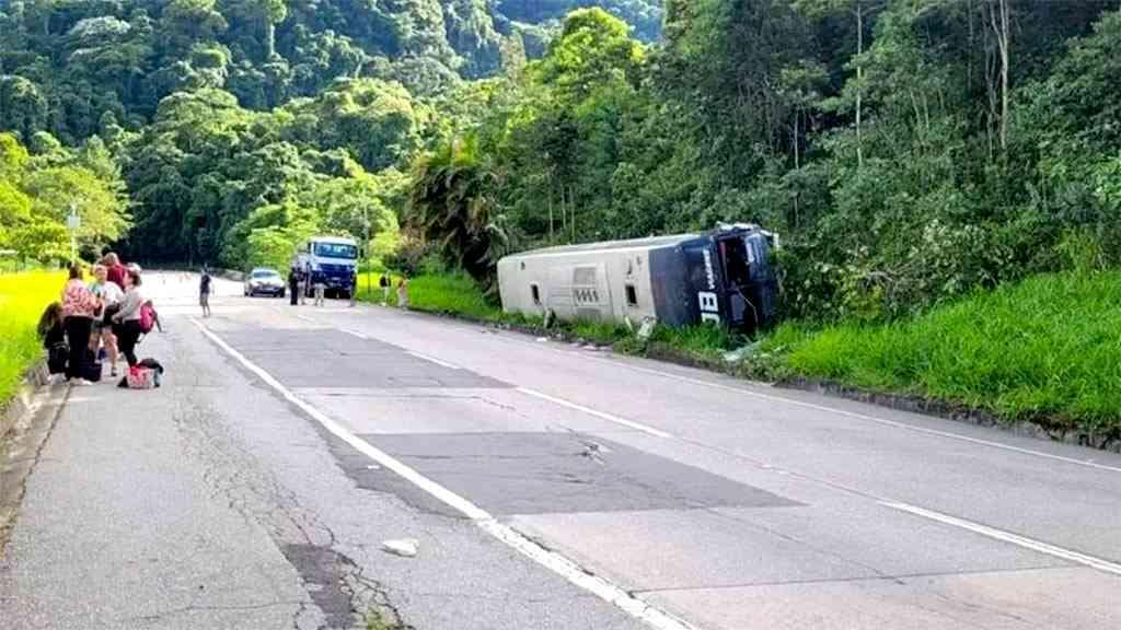Ônibus sem freio tomba em curva de descida na Serra de Petrópolis