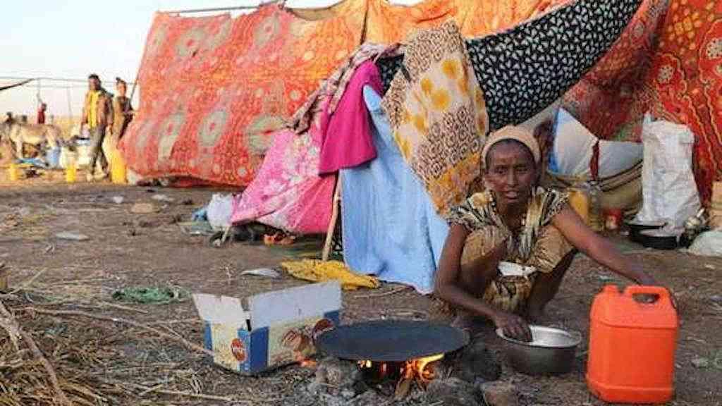 Mulher em campo de refugiados na Etiópia, país que é palco de conflito há quase um ano e meio
