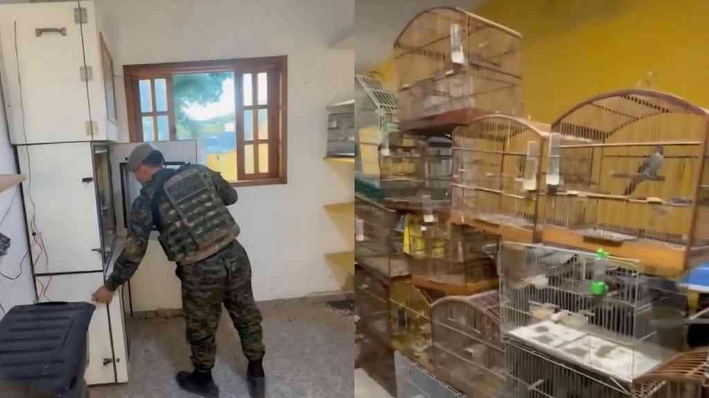 No endereço indicado, os policiais encontraram diversas espécies mantidas sem autorização. Foram apreendidos dois canários-da-terra, 12 trinca-ferros, dois papagaios-verdadeiros, um papagaio-ecletus, 19 curiós, 14 tizius e 13 coleiros.