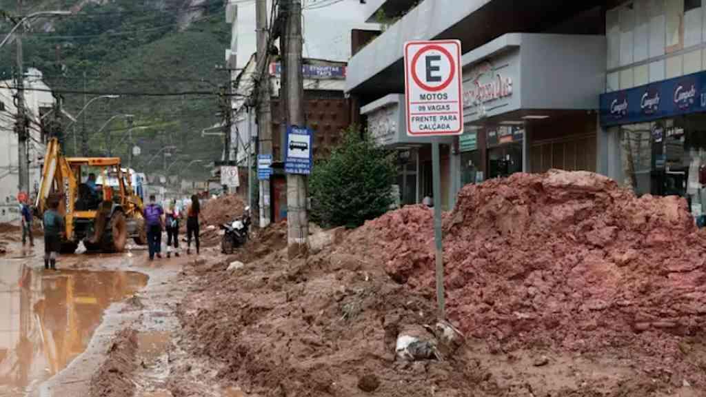Destruição causada pela lama de deslizamentos de terra das chuvas em Petrópolis