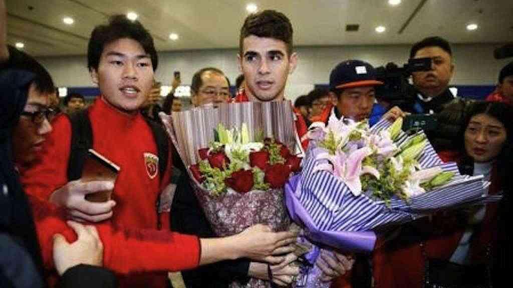 Torcedores com a camisa vermelha e branca da equipe gritavam o nome de Oscar. Durante a chegada do jogador brasileiro ao aeroporto internacional de Xangai nesta segunda-feira. Ele parou para dar autógrafos antes de ser recepcionado por representantes do time.