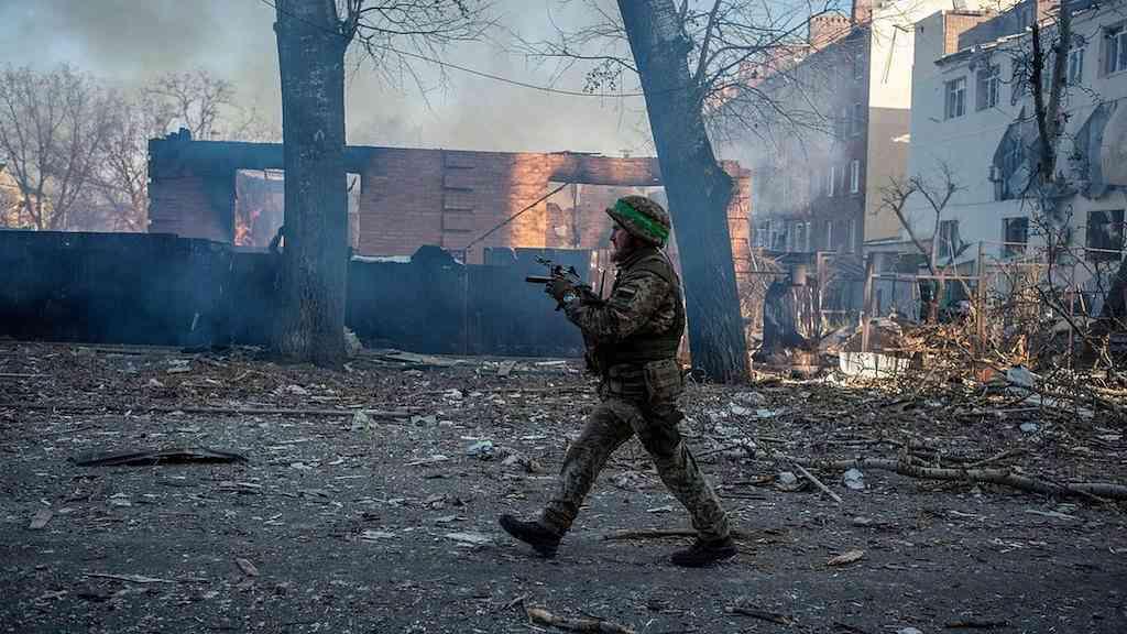 A cidade de Bakhmut, em Donetsk, alvo principal do Exército invasor do presidente russo, Vladimir Putin, estava em uma posição precária.