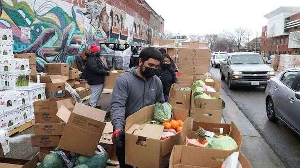 Entrega de alimentos por organização New Life Centers, em Chicago, Illinois
