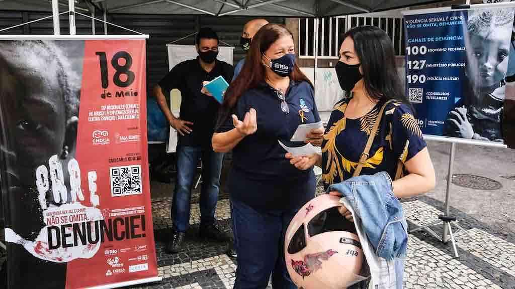 Em tenda montada em frente à Galeria Menescal, um dos locais mais movimentados de Copacabana, bairro que concentra tanto casos de exploração sexual infantil quanto de pessoas em situação de rua, a SMAS e o CMDCA alertaram a população para a importância da atuação da sociedade nesses casos. Equipes dos Centros Especializados de Atendimento em Assistência Social (Creas), as coordenadoras dos Conselhos, Érica Arruda, e da Infância e Adolescência, Alice Peçanha, e a conselheira tutelar Claudelice Silva, da Zona Sul, receberam o público e tiraram dúvidas sobre o assunto, distribuíram material informativo e exemplares do Estatuto da Criança e do Adolescente (ECA).
