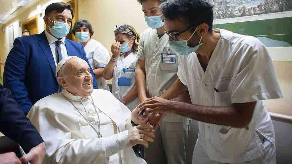 Bruni disse que antes de o papa fazer um pronunciamento público no domingo da varanda do hospital Gemelli, ele visitou crianças em uma ala voltada ao tratamento de câncer. Algumas delas ficaram ao lado dele na varanda. Após o pronunciamento, disse Bruni, o papa visitou outros pacientes e membros da equipe médica.