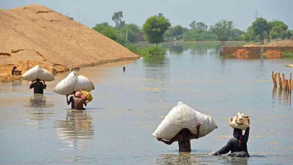 Chuvas recordes de monções e derretimento de geleiras nas montanhas do norte provocaram inundações que varreram casas, estradas, ferrovias, pontes, gado e plantações, e mataram mais de 1,4 mil pessoas.