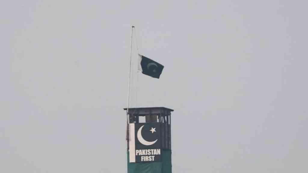 Bandeira do Paquistão em torre de vigilância na fronteira do país com a Índia