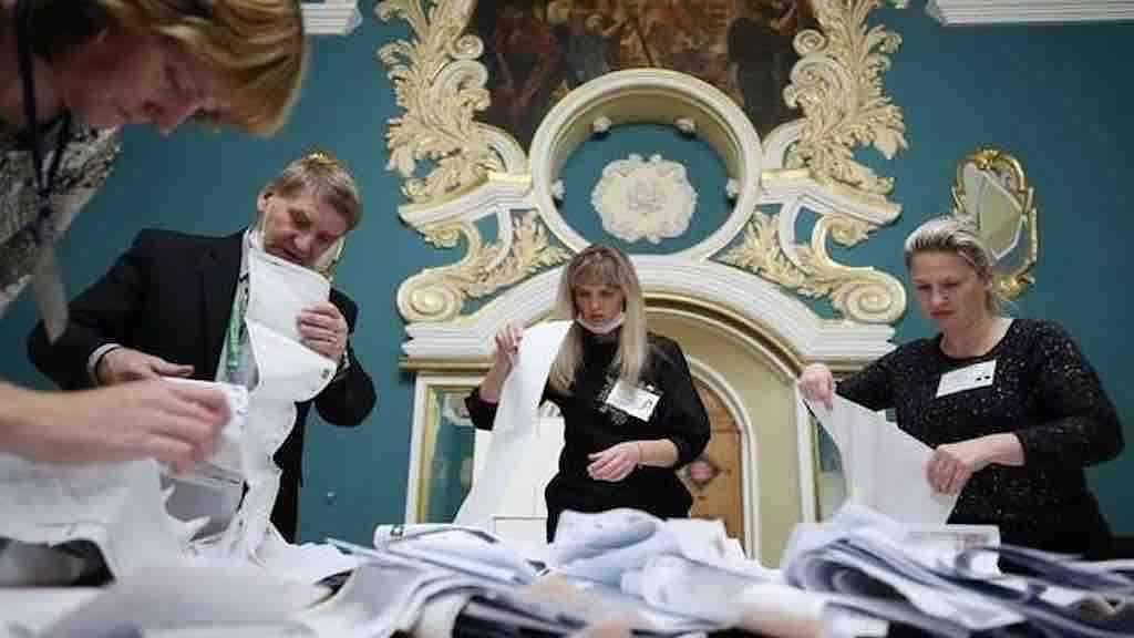 Com 98% das urnas apuradas nesta segunda-feira, a Comissão Eleitoral Central disse que o Rússia Unida havia conquistado quase 50% dos votos e que seu rival mais próximo, o Partido Comunista, havia ficado pouco abaixo dos 20%. O Rússia Unida ficou com 54% dos votos em 2016, a última ocasião em que uma eleição havia sido realizada.