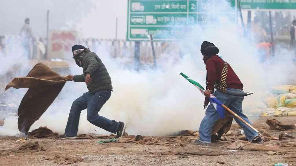 Fugindo do gás ardente e das nuvens de fumaça, os agricultores, alguns usando máscaras médicas, correram para os campos ao redor do ponto de encontro em uma rodovia a cerca de 200 km ao norte de Nova Délhi.