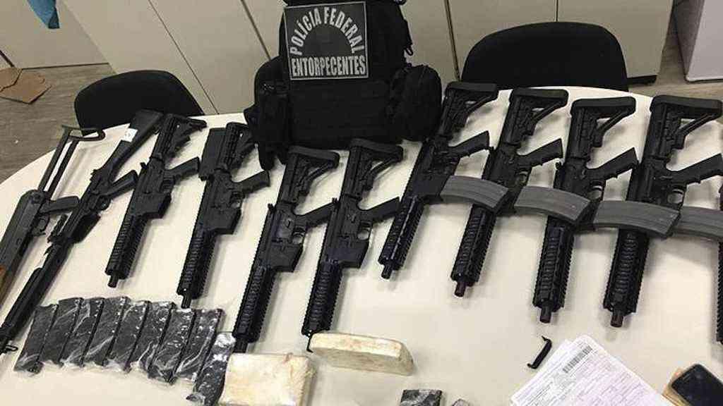 De acordo com a Polícia Federal (PF), junto com as armas foram encontrados 19 carregadores de fuzil (peça que contém as munições) e dois tabletes de cocaína.