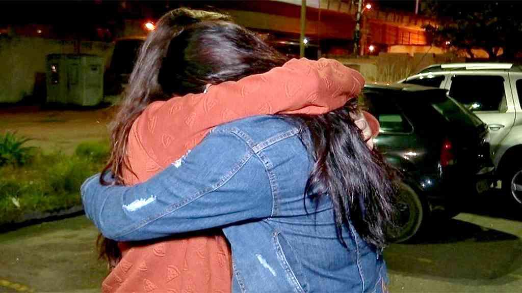 As filhas de Gilmara da Silva se abraçam e choram a morte ainda inexplicável da mãe