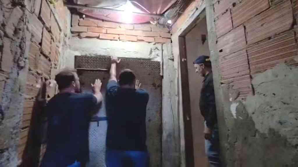 Ao chegarem ao imóvel, os agentes encontraram a estrutura reforçada usada como barreira. Após acessarem o interior, flagraram três homens comercializando drogas.