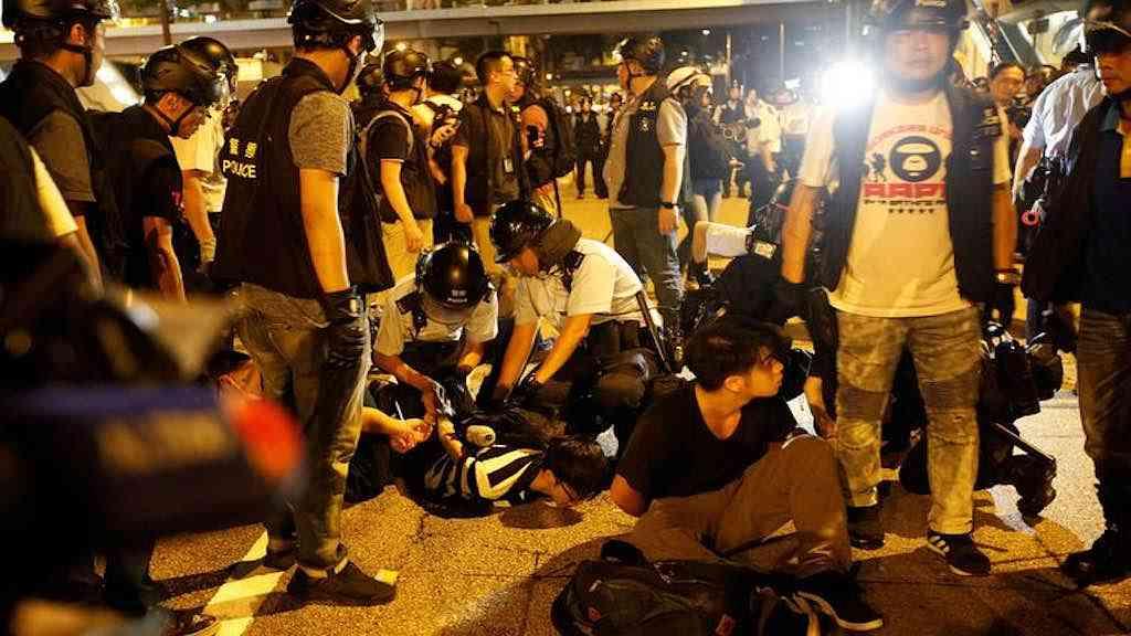 Autoridades reprimiram atos violentos em Hong Kong após manifestantes entrarem em confronto com a polícia durante um protesto contra a revisão da lei sobre extradição.
