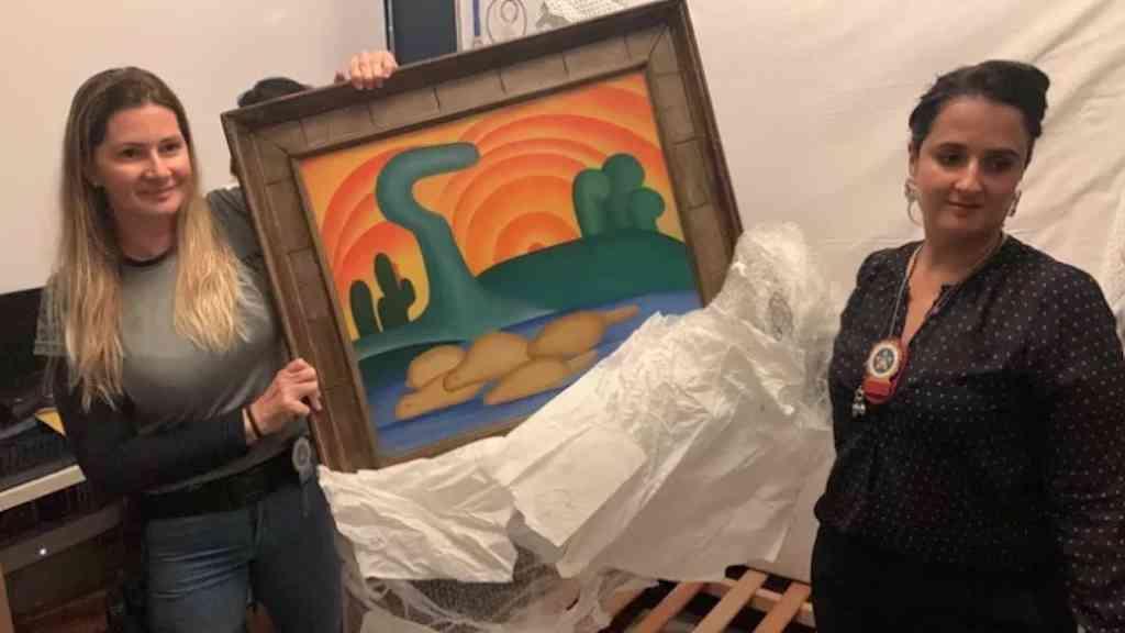 Entre os quadros recuperados pela polícia está a obra de Tarsila do Amaral, Sol Poente, que dá nome à operação.