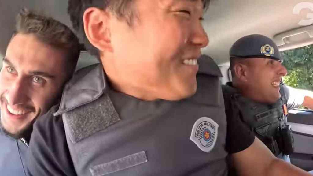 Até a noite desta terça-feira, o vídeo tinha mais de 1,6 milhão de visualizações. Em uma das passagens da gravação, de quase 40 minutos, o youtuber aparece fardado em uma viatura, ao lado dos agentes, durante uma incursão a uma favela. Kimura chega a manusear uma arma.