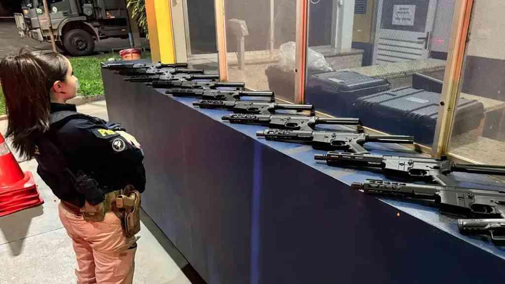 O motorista pretendia levar as armas e a droga até a cidade de São Paulo. Todos os fuzis são de calibre 5,56 mm, fabricados nos Estados Unidos. E a pistola, de calibre 9 milímetros, tem origem turca.
