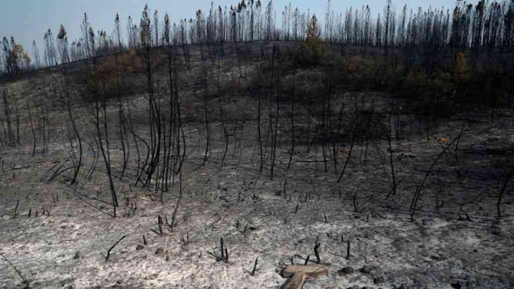 Árvores após incêndio na vila de Cardigos, em Portuga
