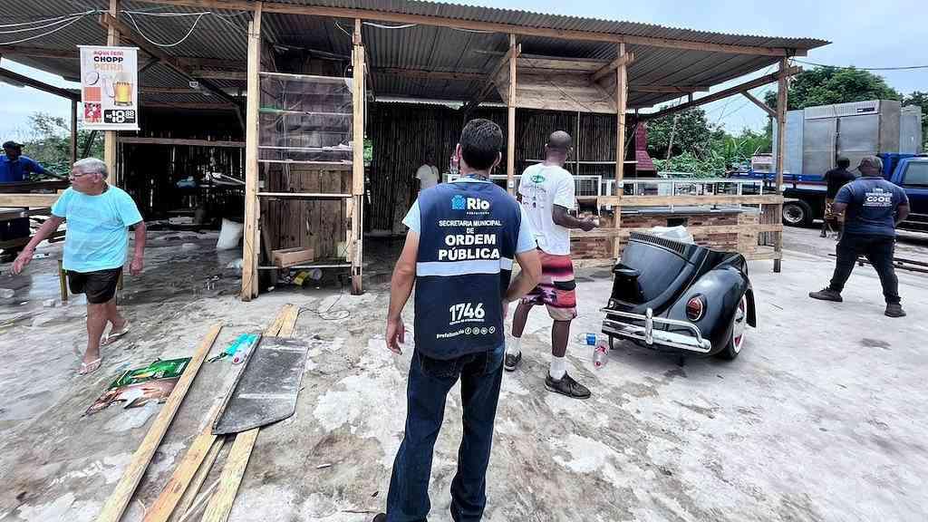 No local, de aproximadamente 400 m², funcionava um bar com estrutura de madeira, além de duas tendas cobrindo mesas e cadeiras, tudo em área pública e sem nenhuma autorização da prefeitura. Num terreno ao lado, o dono do bar se apropriou cercando um espaço de 2 mil m² que servia como estacionamento. Ligações clandestinas de água e energia foram encontradas. Foram apreendidos 15 freezers, 23 mesas de madeira, 95 cadeiras, 10 mesas de plástico e um baú.