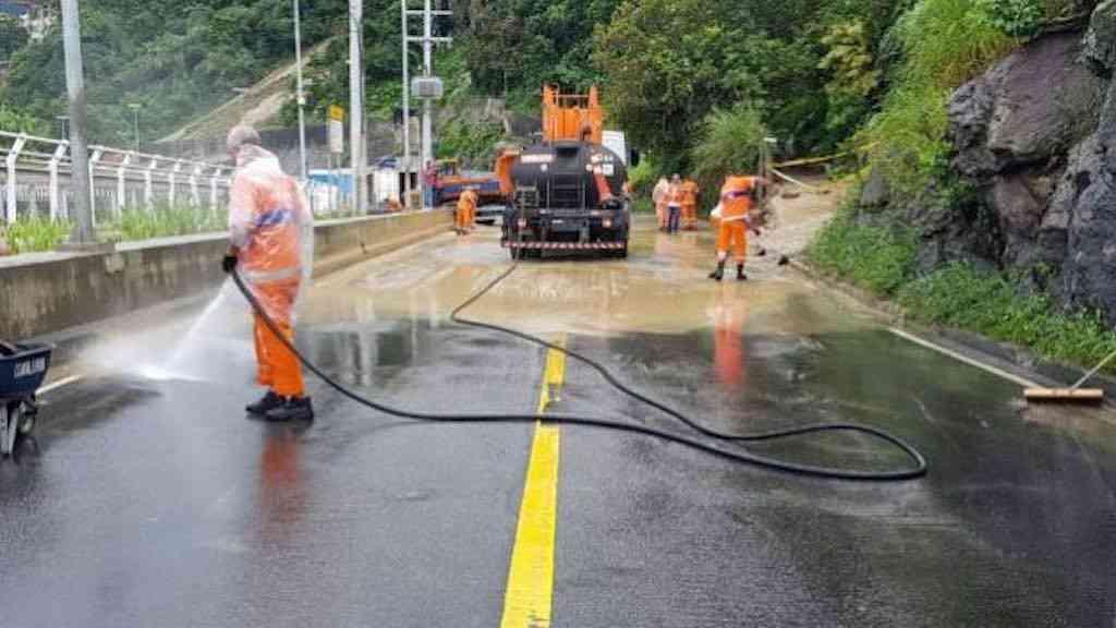 A Comlurb mobilizou uma equipe de garis, com apoio de uma pá carregadeira, três caminhões basculantes e três caminhões pipa para atuar na remoção de terra que atingiu a Av. Niemeyer. As equipes atuam com pá carregadeira e caminhão basculante na área. Ainda há equipementos sendo deslocados para o local.