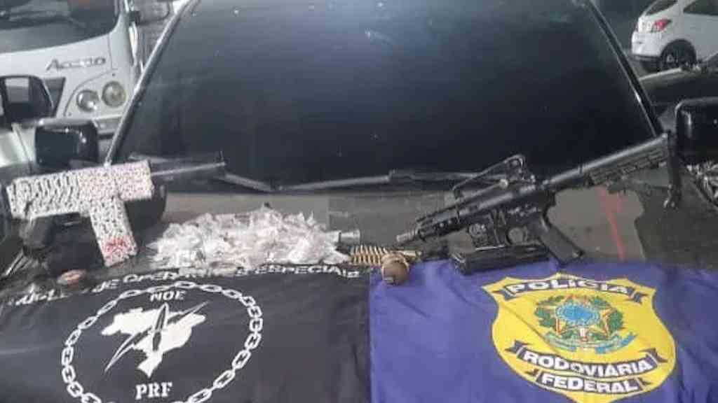 Na noite de quinta-feira, a Polícia Rodoviária Federal apreendeu diversas drogas, além de dois fuzis e uma granada pronta para uso. A ação aconteceu no km 302 da Rodovia Niterói-Manilha (BR-101), em São Gonçalo. Um homem foi preso e um veículo foi recuperado após troca de tiros.